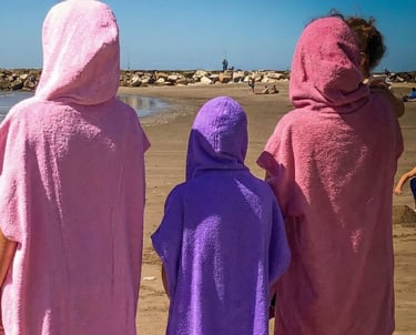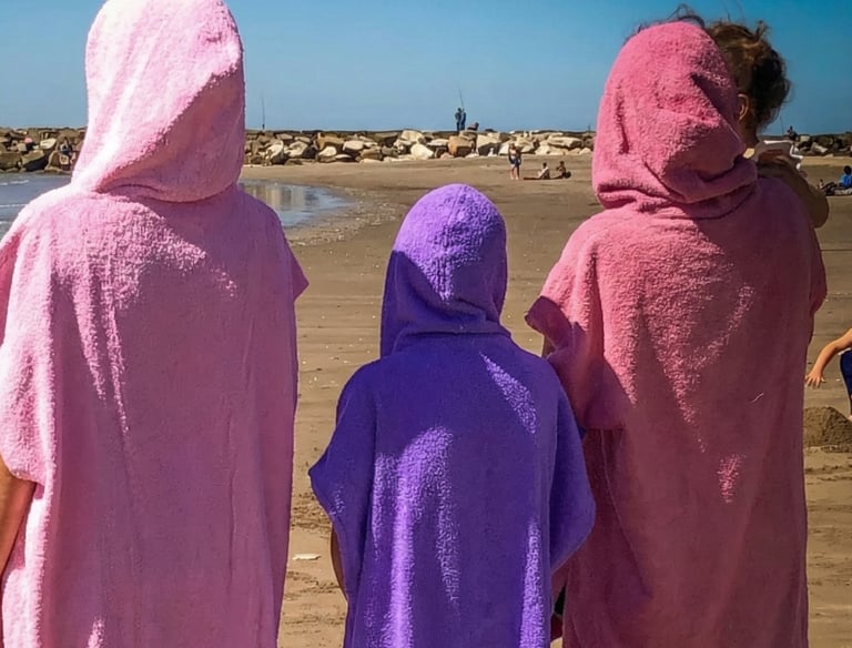 Nuestros ponchos cambiadores te secan rápido tras nadar o jugar en la playa.